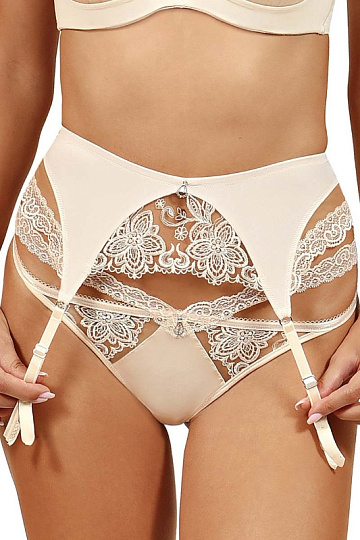 Элегантный пояс для чулок Gracija RIM арт. 40269 выполнен из изысканного кружева и прозрачной вуали цвета кофе с молоком. Отлично комплектуется с бельем из этой коллекции.