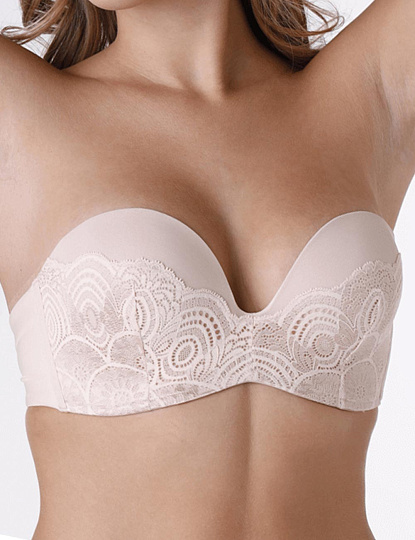 Данные бюстгальтеры удерживаются на теле благодаря специальной конструкции пояса – силиконовой дорожке, которая не позволит вашему бра спадать. Специализированные бренды белья уже давно научились отшивать страплессы даже на очень большую грудь. Данная модель выручит не только на период особых случаев, но и в жаркий сезон, будет совершенно незаметна под летним платьем, легкой блузкой или открытым сарафаном.