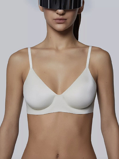 Бюстгальтер с формованной чашкой на каркасах. Чашки обтянуты изящным кружевом с флоральным орнаментом. Стан бюстгальтера кружевной дублирован корсетной сеткой. Регулируемые бретели. Застежка на 2 ряда крючков имеет 3 положения для комфортного регулирования объема под грудью. Между чашек декоративный бантик из органзы с подвеской-символом РР.