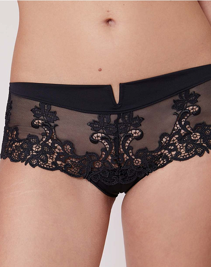 Баска с оригинальным вырезом и задняя часть из плотной микрофибры для лучшей поддержки. Бретель декорирована ажурной вышивкой.