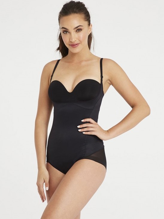 Удобное боди без бюста легкой степени коррекции. Идеальное решение для тех, кто предпочитает вариант "3 в 1": приподнимает грудь снизу и по бокам; корректирует фигуру от линии бюста до ягодиц, а трусики с "эффектом танга" создают идеально округлые ягодицы