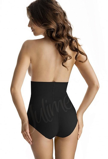 Корсетные панталоны с завышенной талией средней степени коррекции из шелковистого материала. Дополнительная невидимая вставка на фронтальной панели усиливает корректирующий эффект области живота. Широкая лента подчеркивает талию. Нижний край выполнен из кружева с силиконовой лентой, что позволяет изделию плотно зафиксироваться на бедрах и не вызывать дискомфорта при ходьбе. Ластовица – 100% хлопок.