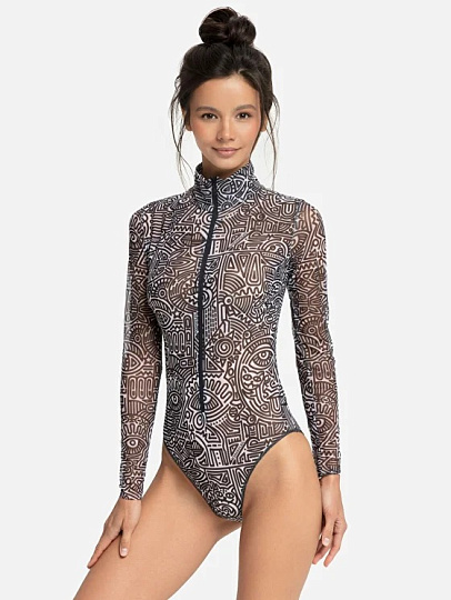 Купальник со встроенными корректорами, поддерживающая резинка под грудью, силиконовая молния по центру передней детали.