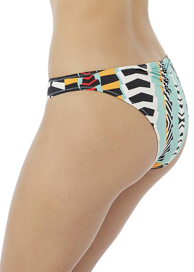 Верх бикини на косточках Freya Bassline High Apex с конвертируемыми бретелями. Модель дополнена абстрактным геометрическим принтом в сочетании цветов от горчично-желтого до яркого апельсина и прохладной мяты. Глубокое декольте обеспечивает эффектный образ, а чашки с подкладкой создают идеальную форму и поддержку. На спине крючок J-hook для легкого перестегивания бретелей.