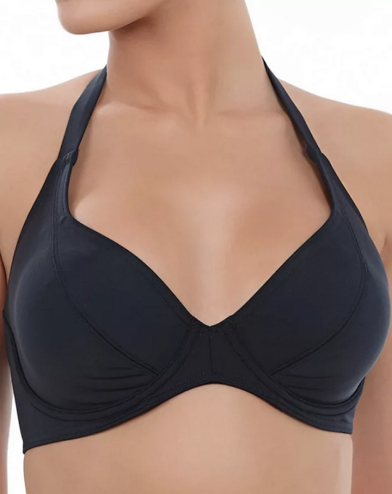 Бюстгальтер с мягкими чашками, на каркасах (с косточками). Придает груди круглую форму, и обеспечивает ей хорошую поддержку. Халтер (бретели, завязывающиеся на шее) прекрасно собирают грудь.