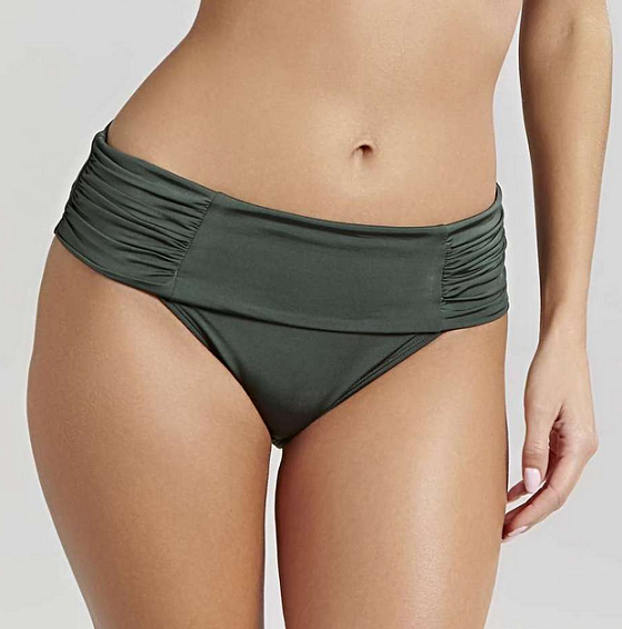 Классические плавки цвета графит с отворотным поясом, который позволит изменять образ в зависимости от настроения.
