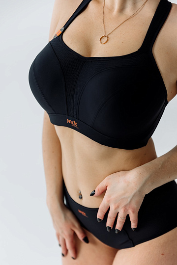 Производители белья разработали инкапсулированную чашку, которая в отличие от компрессионной, где идет акцент только на компрессию груди, удерживает каждую грудь в отдельном «домике», тем самым блокируя все движения – влево-вправо, вперед-назад, вверх-вниз, по диагонали, тем самым сокращая колебания груди на 83%. Такие спортивные бюстгальтеры предотвращают растяжение куперовых связок, что сохраняет красоту вашей груди.