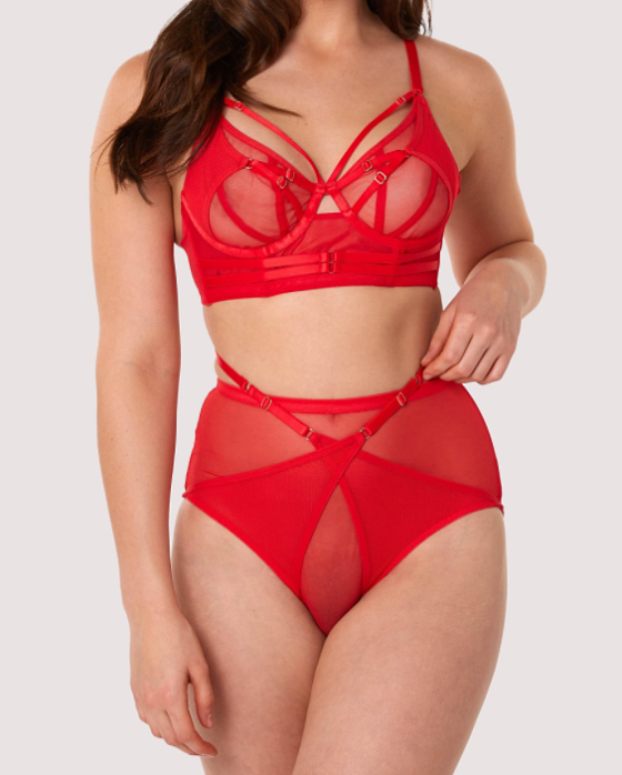 Трусы Eddie от английского бренда Playful Promises имеют завышенную талию, что обеспечивает облегание фигуры и подчёркивает изгибы тела. В модели присутствуют сетчатые панели и эластичные сатиновые ремешки. Ластовица выполнена из 100% хлопка. Поясной ремень и лямки перекрестного ремня регулируются для оптимальной посадки на бёдрах.
