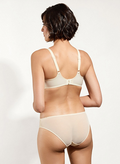 Трусы-шорты Simone Perele из коллекции Wish дополняют модели бюстгальтеров этой серии. Передняя часть модели из полупрозрачного тюля, декорированного вставками из воздушного гипюра. Задняя часть из дублированного тюля, обеспечивающего невидимость под одеждой и создающего волнующий образ. Линия талии акцентирована широкой полосой.