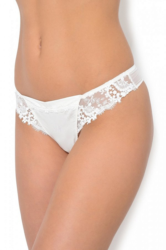 Стринги Simone Perele из коллекции Wish дополняют модели бюстгальтеров этой серии. Модель из жаккардового атласа декорирована элементами из полупрозрачного тюля с гипюровыми вставками. Ювелирное мастерство дизайнеров Simone Perele воплощено с особой роскошью в этой коллекции.