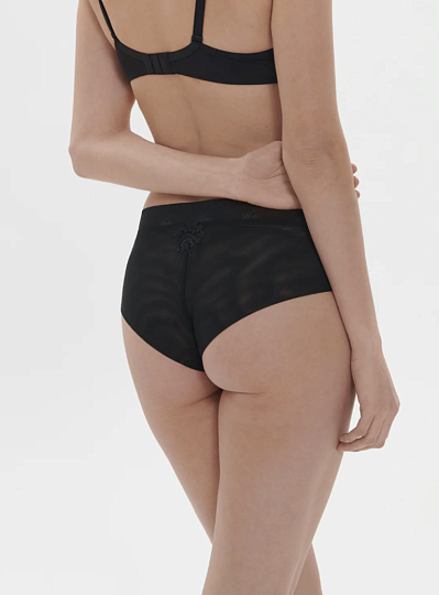 Модель трусов: бразилиана. Передняя часть выполнена из мягкой эластичной сетки, украшенной изящным бахромчатым кружевом. Задняя часть модели выполнена из двухслойного сетчатого материала с плоским бесшовным краем. Тонкая эластичная тесьма по верхнему срезу с плоским швом для идеальной посадки. Хлопковая ластовица. Анатомический крой для идеальной посадки по фигуре.