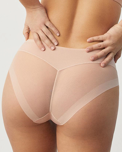 Трусы-бразилиана средней посадки Eir от польского бренда Subtille. Комбинация материалов: упругая эластичная сетка, изящные кружевные вставки. Задняя деталь выполнена из двойной сетки с плоским краем без швов. Натуральная ластовица из хлопка.