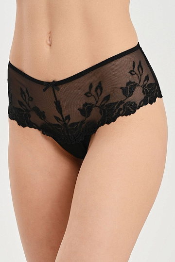 Выполнены из эластичного сетчатого полотна в сочетании со вставками из изящной биколорной вышивки. Верхний срез и срез проймы передней детали отделаны тонкой эластичной лентой. Пройма задней детали с плоскими фигурными краями не выделяется под одеждой. Ластовица из хлопка.