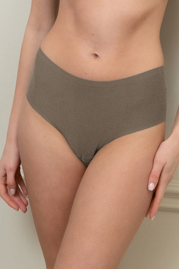 Mодные трусики бразилиана из коллекции ЗАРИНА в цвете мокка, со средней линией талии.