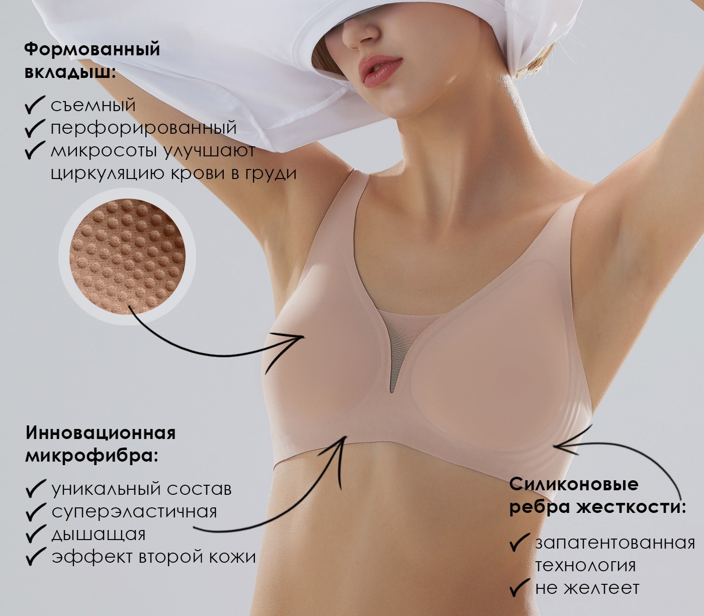 • отсутствие косточек – этот критерий особо важен для тех, у кого чувствительная кожа или особая конструкция ребер (при которой носить бра с косточками физически затруднительно);